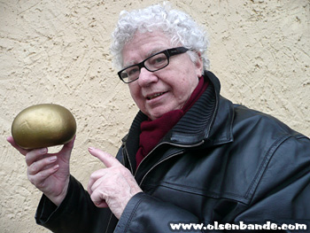 J.L.: Die berühmte Kugel habe ich von Arthur Jensen geerbt, welcher Meyer spielt. Er hatte sie vergoldet erhalten und die stand eines Tages in einer Vitrine in meinem Haus. Das war Henning Bahs, der sich den Gag mit der Kugel ausgedacht hat, die Meyer nie an das Treppengeländer festgeschraubt bekommen hat. Jedes Mal, wenn sie ihm runterfällt, bekommt Möbelträger Olsen (Poul Reichhardt) einen seiner berühmten Wutanfälle.